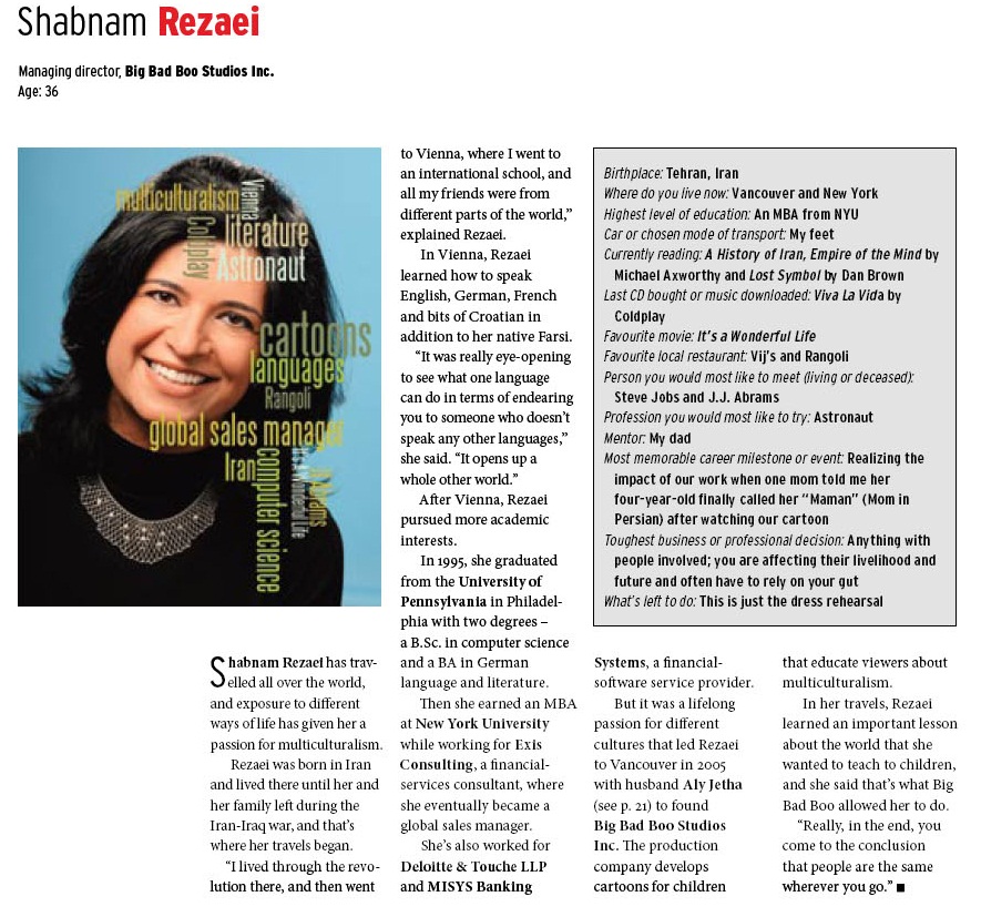 اختيار علي جيثا وشبنم رضائي كأفضل 40 مديرًا تنفيذيًا في فانكوفر ضمن قائمة أفضل 40 مديرًا تنفيذيًا في قطاع الأعمال تحت سن الأربعين من قبل BIV